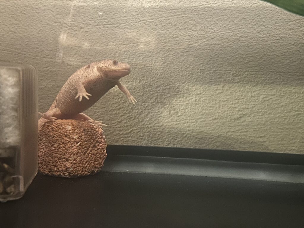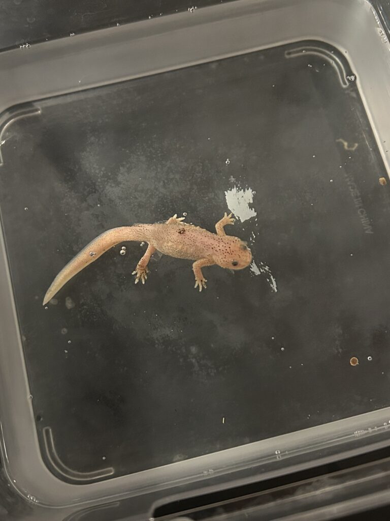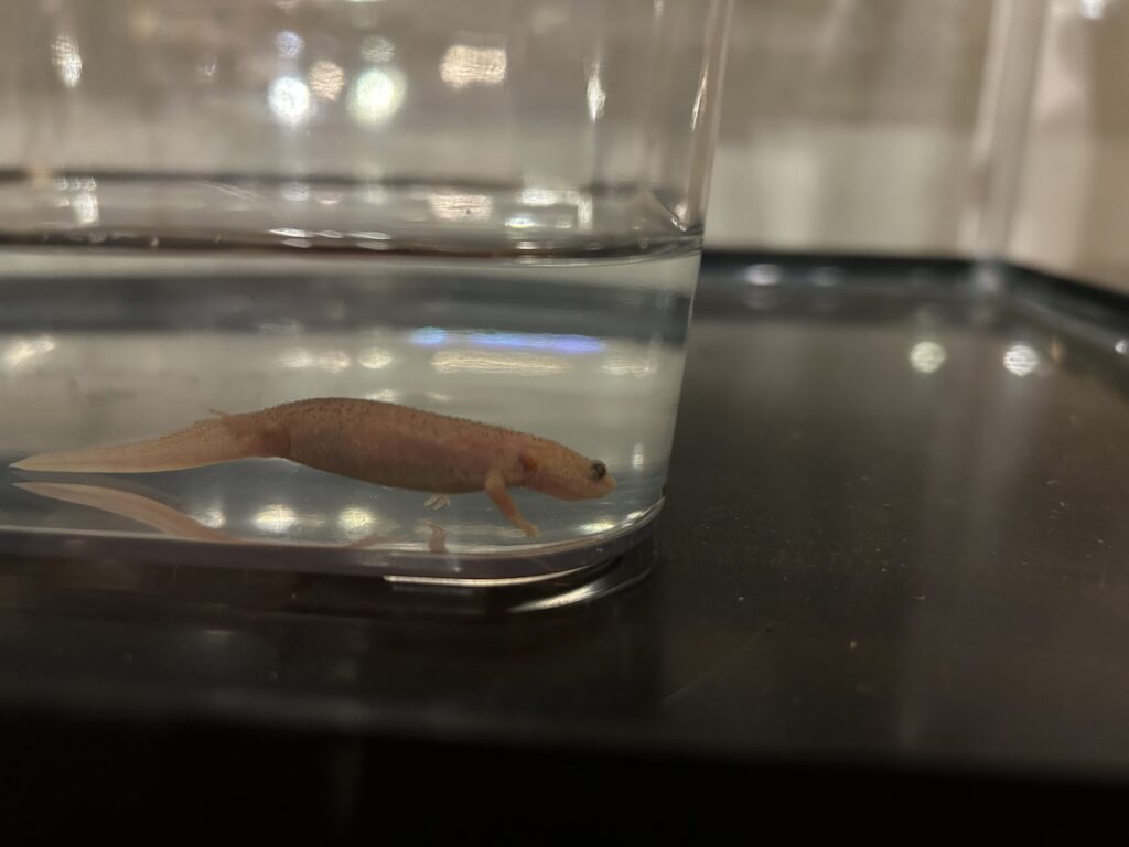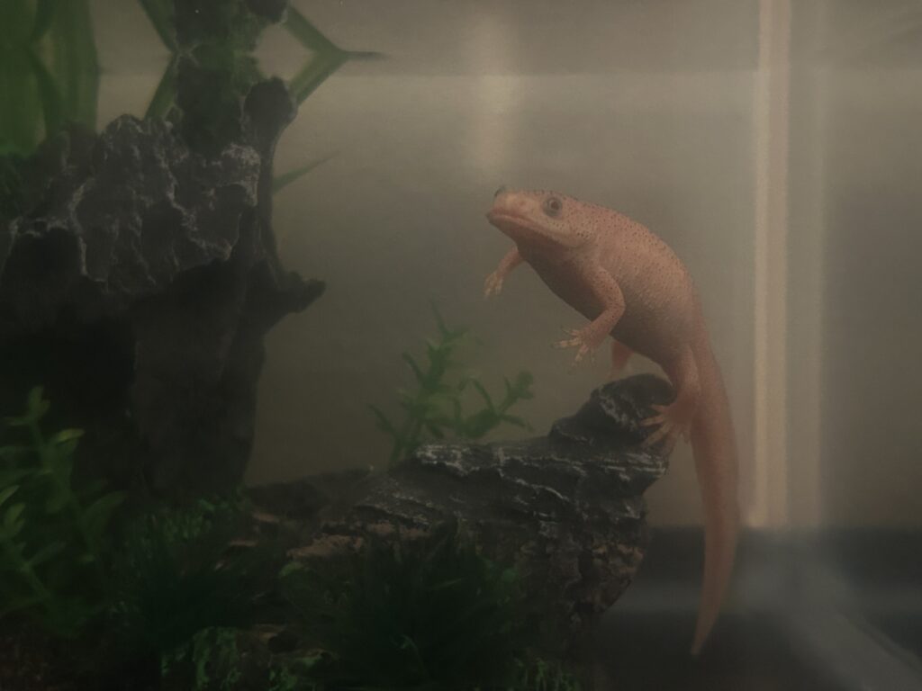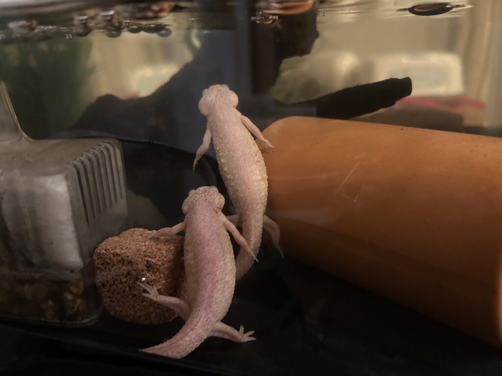 知り合いのところでたくさん生まれた「イベリアトゲイモリ」を譲り受けた。ピンク色の身体に黒い目。「リューシスティック」と呼ばれている種類だ。