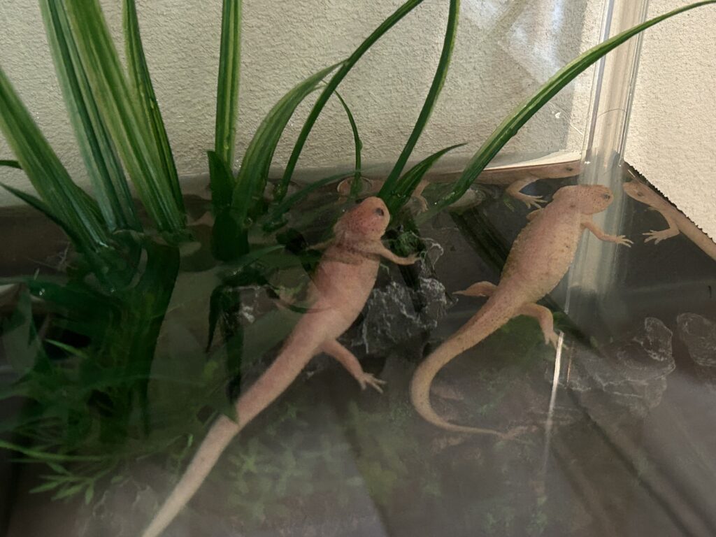 イベリア半島の水域に生息する最大30センチになるイモリで、半水生だけど、ほとんど水の中にいる。危険を感じると肋骨を皮膚から突き出すという珍しい防御法を持っている。突き出した肋骨には毒の粘液が付着しているらしい。そんな風に聞くと、どう猛な性格のイモリを想像するけれど、今のところおっとりとした性格にしか見えない。